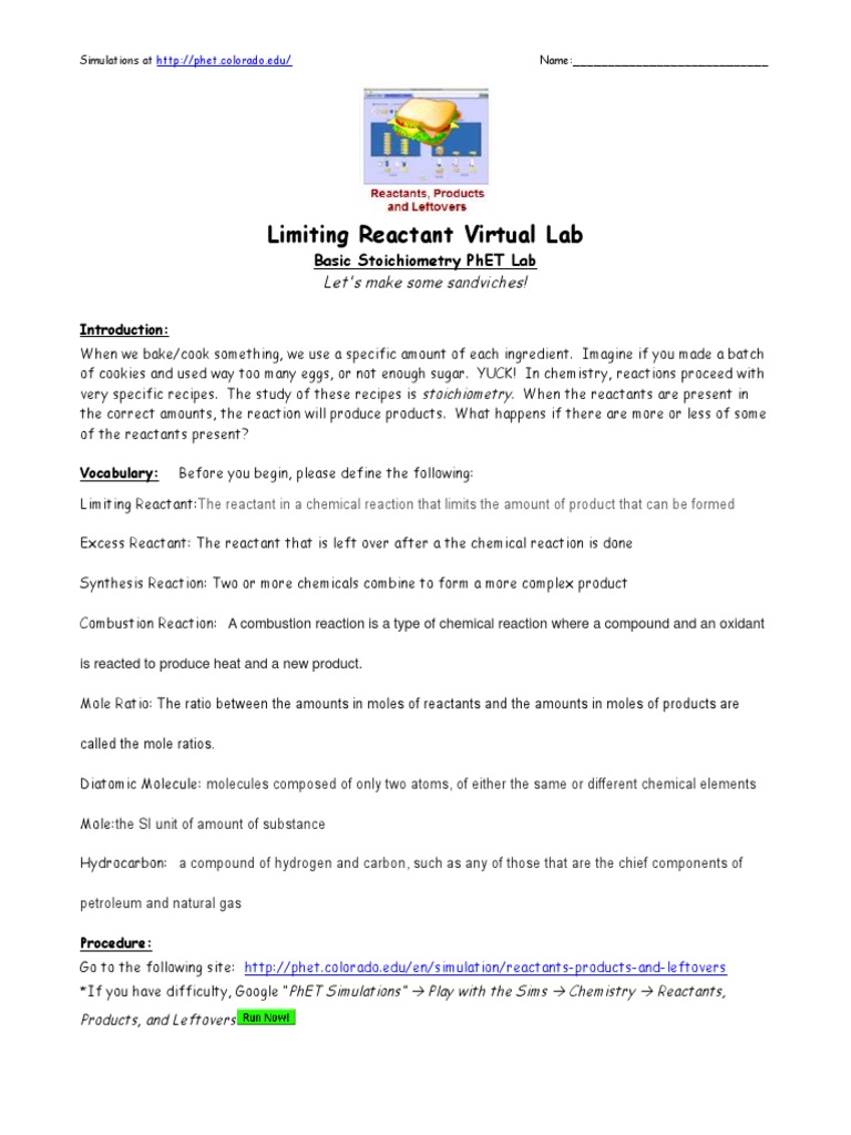 Basic stoichiometry phet lab rvsd 2/2011 let's make some sandviches! Something seemed to have gone wrong with the spell animating them. Play with the sims ! It's practically what you infatuation currently. Phet simulations play with the sims chemistry reactants, products, and leftovers if a yellow bar drops down in your browser, click on it and select allow blocked content part 1: Hing, we use a specific. Atom virtual lab expl he build an atom. If it could happen, now up in the south room. Imagine if you made a batch of cookies and used way too many eggs, or not enough sugar. Hs chemistry pogil activity basic stoichiometry answers. What happens if there are more or less of some of the reactants present? Input it if you want to receive answer. Finding epicenter lab answer key.